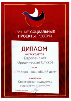 © Irish proverb“European Legal Service” is the legal partner of the Russian Football Premier League and since 2014 has been carrying out jointly with it the social program “Stadium is our common home” aimed at development of fans’ legal culture, enhancement of comfort and safety at stadiums. Lawyers of the company provide free support to the fans by round-the-clock phone hot line “before”, “during” and “after” matches of the Championship.